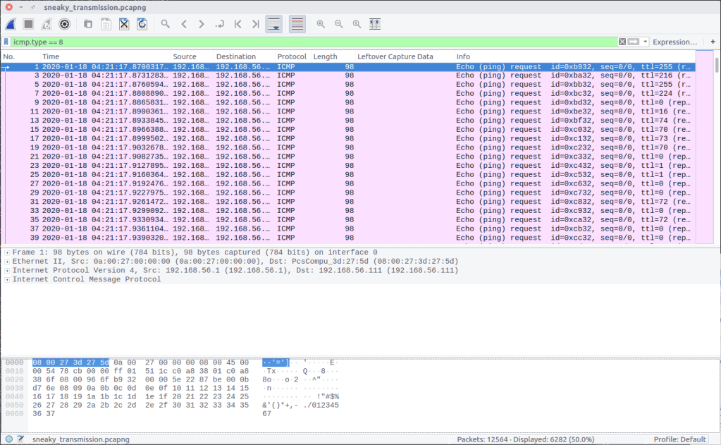 After extracting the PCAP file and opening it in Wireshark, we can bring up the Summary window to find the start and end time of the capture. One thing I’m not sure about is the timezone – it’s not explicitly specified. My SIFT VM and Wireshark are both set to UTC so let’s assume that for now.