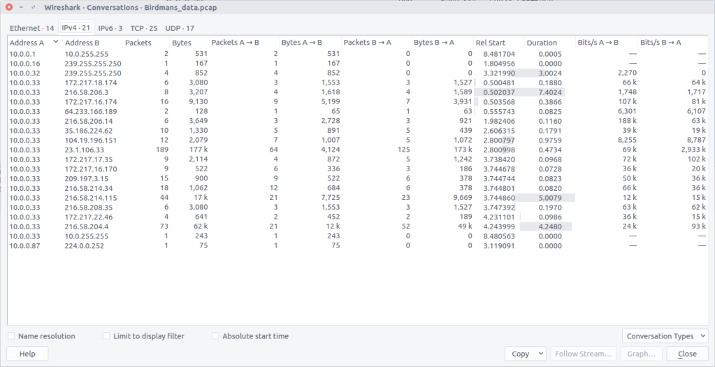 By checking against our IP of interest we can see that 15,128 packets were exchanged.