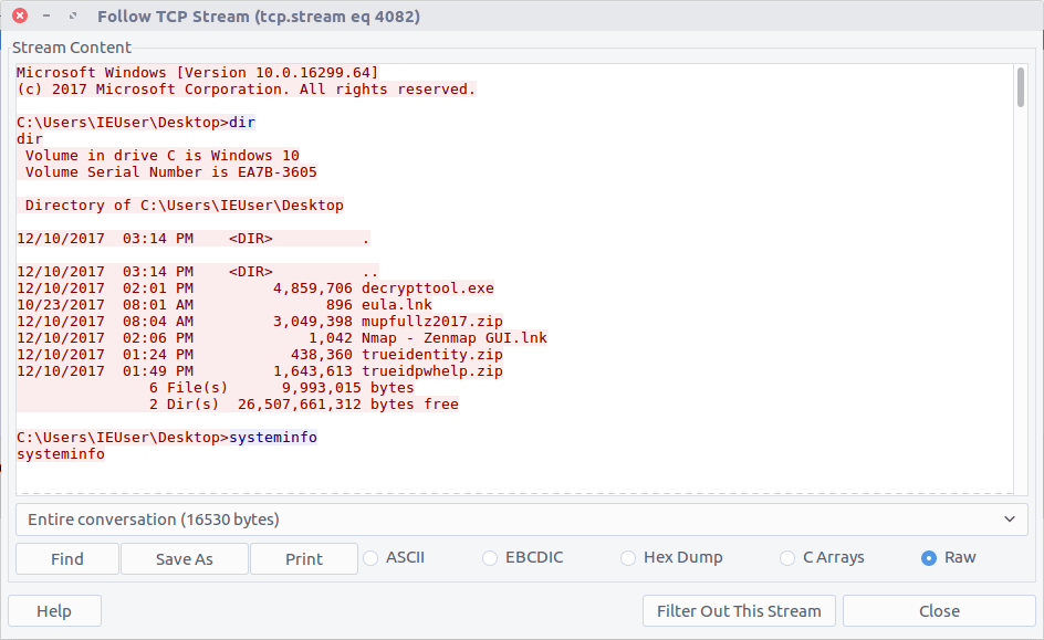 Follow the TCP Stream (#4082) for easier reading. Our malicious binary is acting as a reverse shell into K3anu’s machine!