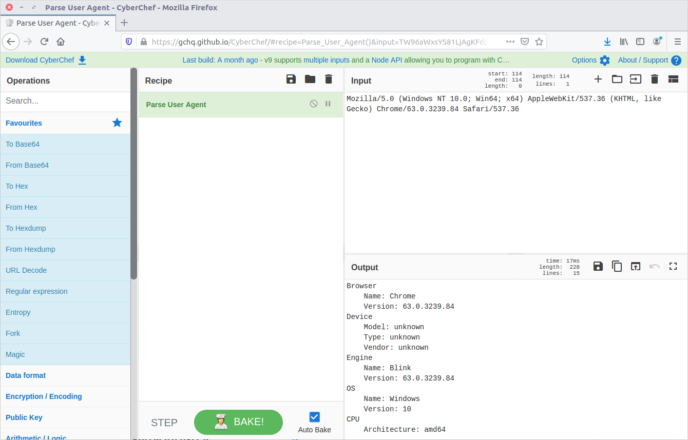 There are a few ways to decode this to find the browser version; I used CyberChef.