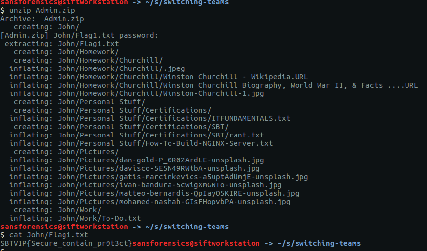 unzip Admin.zip cat John/Flag1.txt