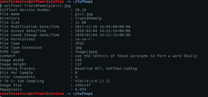 I started with trueidpwhelp.zip – which didn’t require a password – and contained two images of airports. The Comment field in the EXIF data gave a clue…