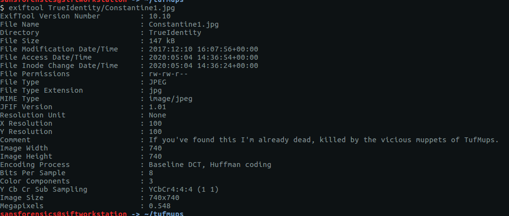 This time it’s the EXIF data from constantine3.jpg that is of use to us.
