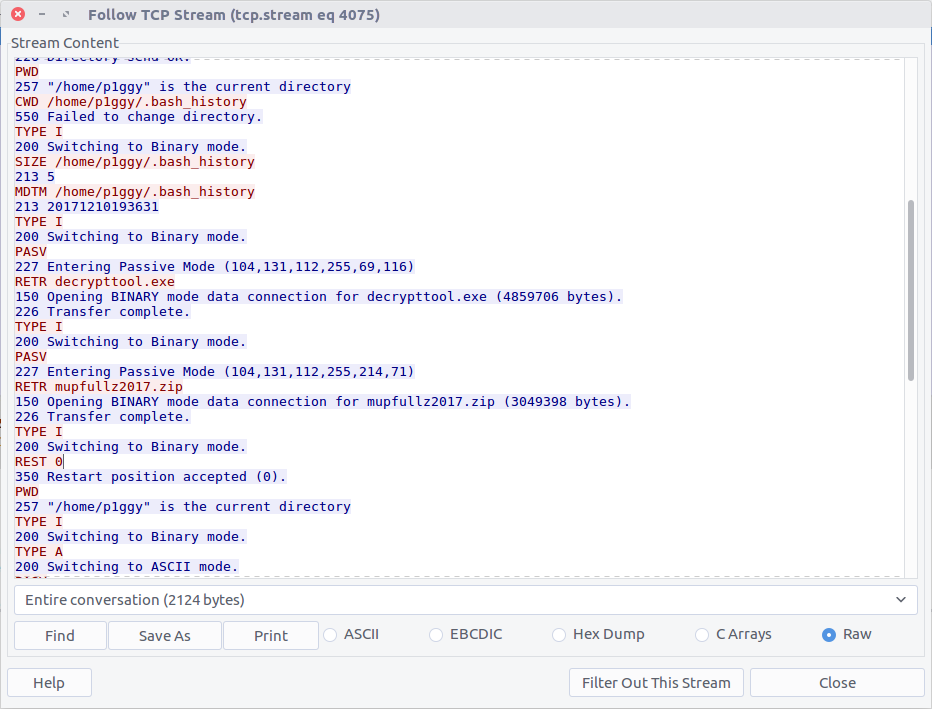 The TufMups have given K3anu a test – decrypt a file from their FTP server. In Question 10 we saw K3anu download two files from the TufMups FTP server; we need to extract them from the PCAP.