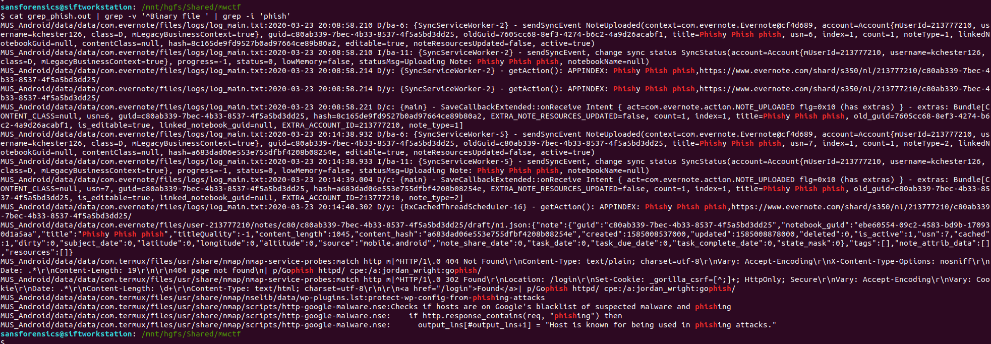 Ok, we are trying to link a particular string to a Process ID. I started by extracting the strings from the entire memory image then using a case-insensitive grep search to get a better idea of what we might be looking for.